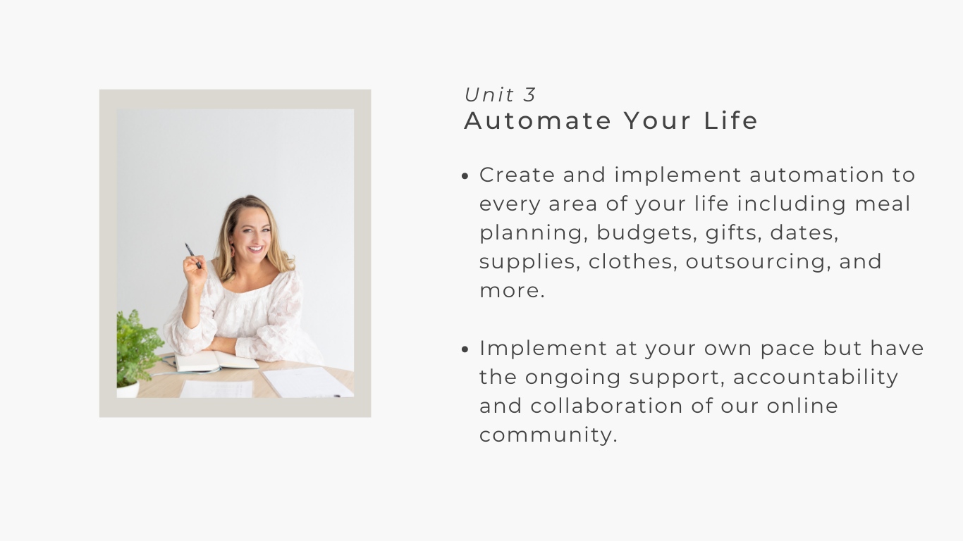 - You'll then have tools to create automation in other areas of your life so that you create capacity to pursue your big ideas and ongoing interests.